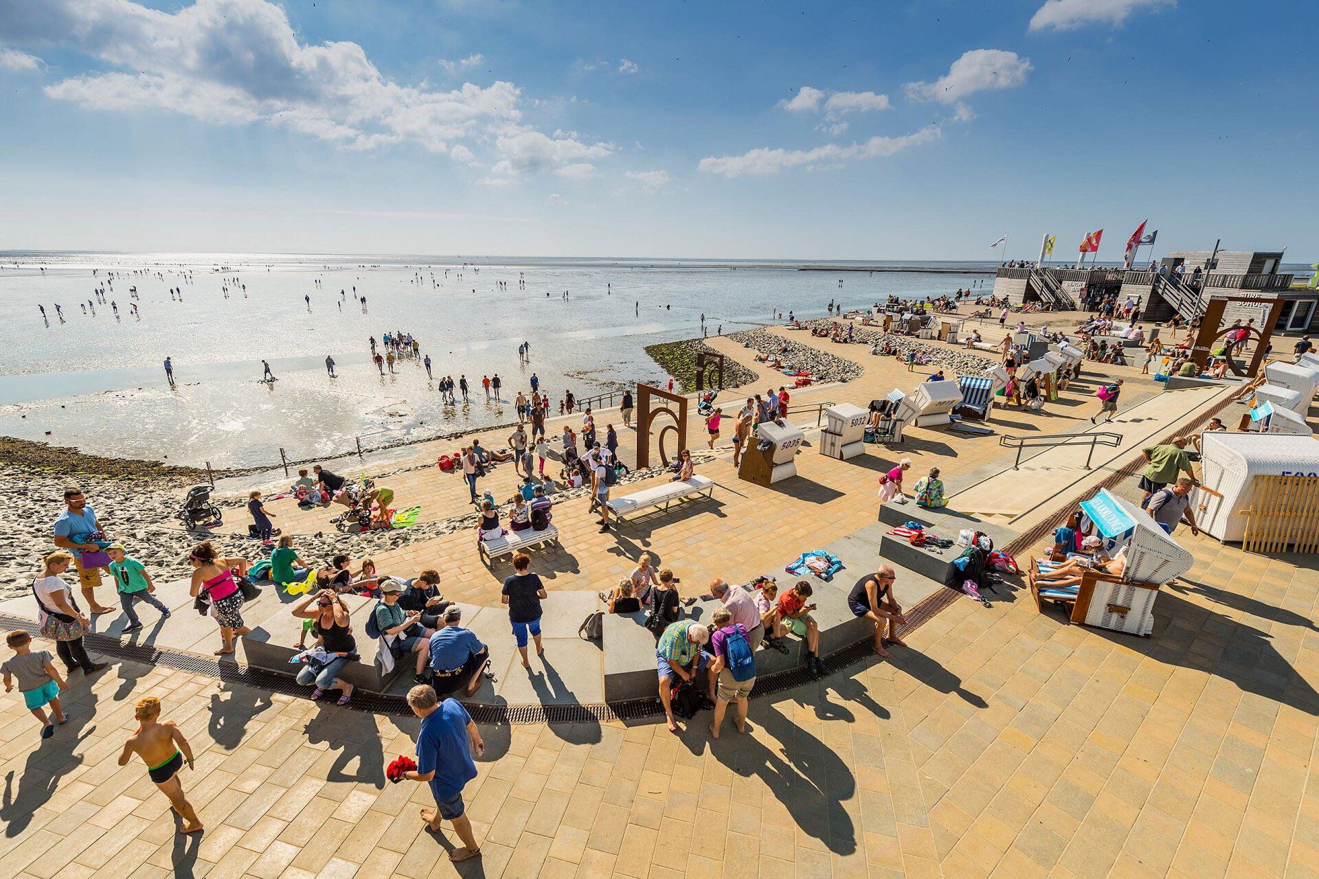Grüne Deichwiesen und das Wattenmeer laden zum Wandern und Staunen ein. Fischkutter bringen täglich fangfrische Krabben an Land, während die Promenade zum Bummeln und Verweilen einlädt. Ob Wattwanderung, Radtour oder ein Konzert unter freiem Himmel - Büsum bietet Abwechslung für jeden Geschmack. Der dänische Nachbar würde es "hyggelig" nennen, die Norddeutschen sagen dazu "kommodig" -