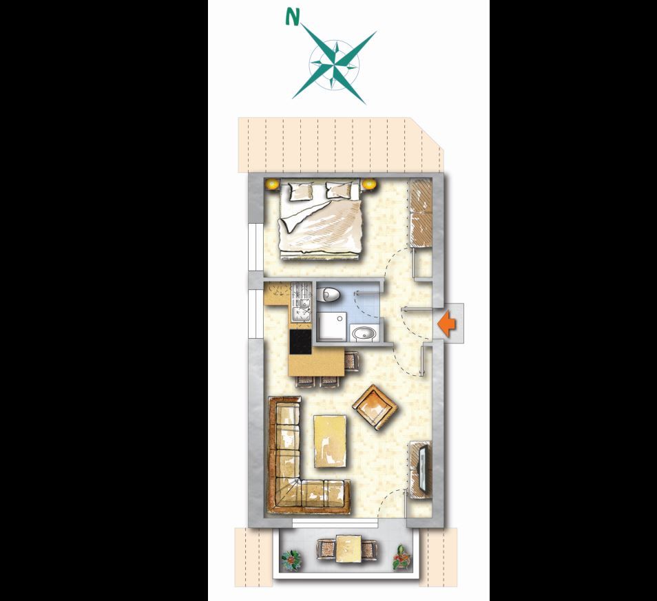 Die 2-Raum Wohnung im urbanen modernen Look in Südwest-Lage mit Balkon, 40 qm Wohnfläche, Zugang über Treppe ins 1. Obergeschoss, Nichtraucher- und tierfreie Wohnung für 3 Personen mit hochwertiger Ausstattung, Vinylboden in allen Räumen.